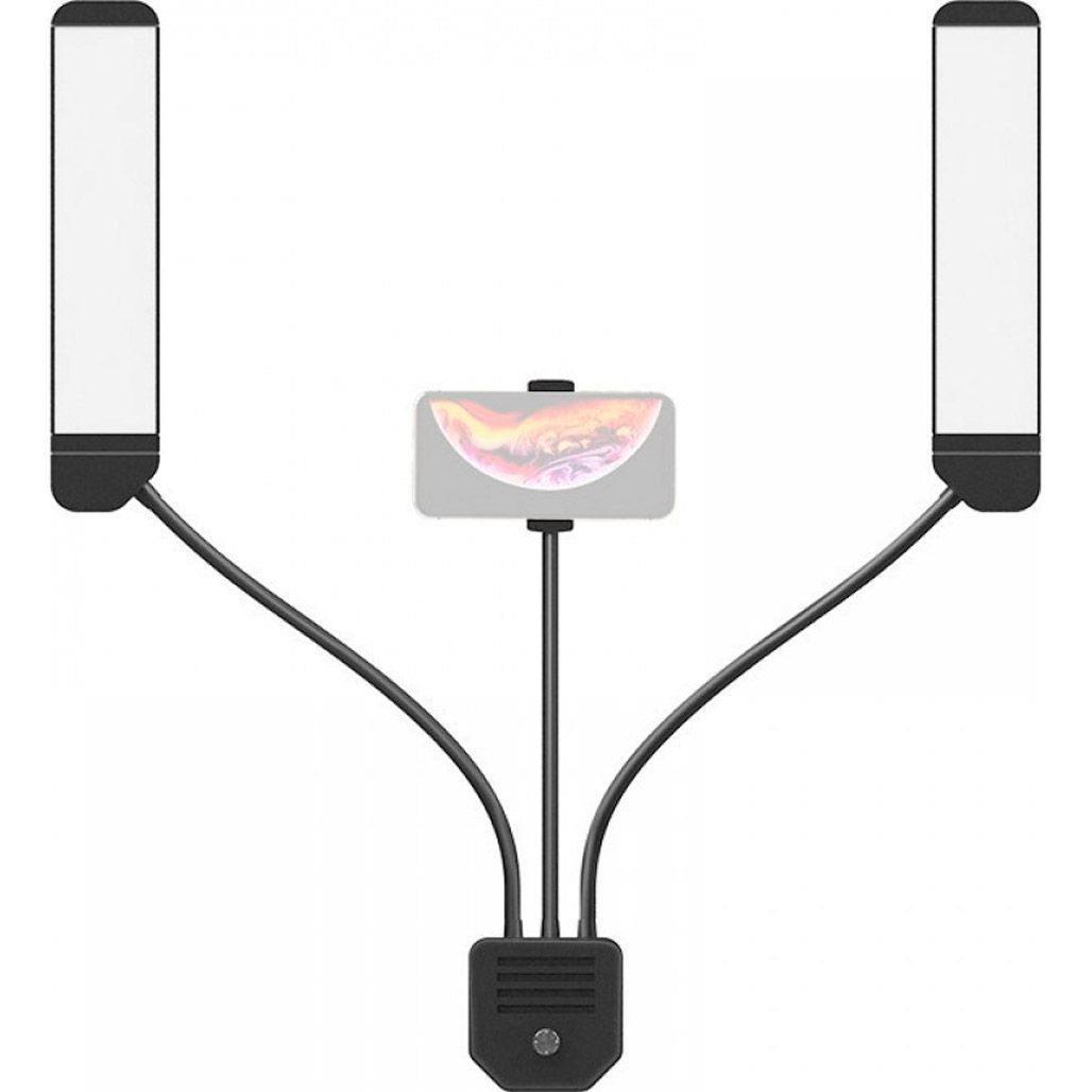 Комплектация | Двойная лампа, держатель для телефона, блок питания, кабель 220В, кабель USB - micro-USB с пультом управления |