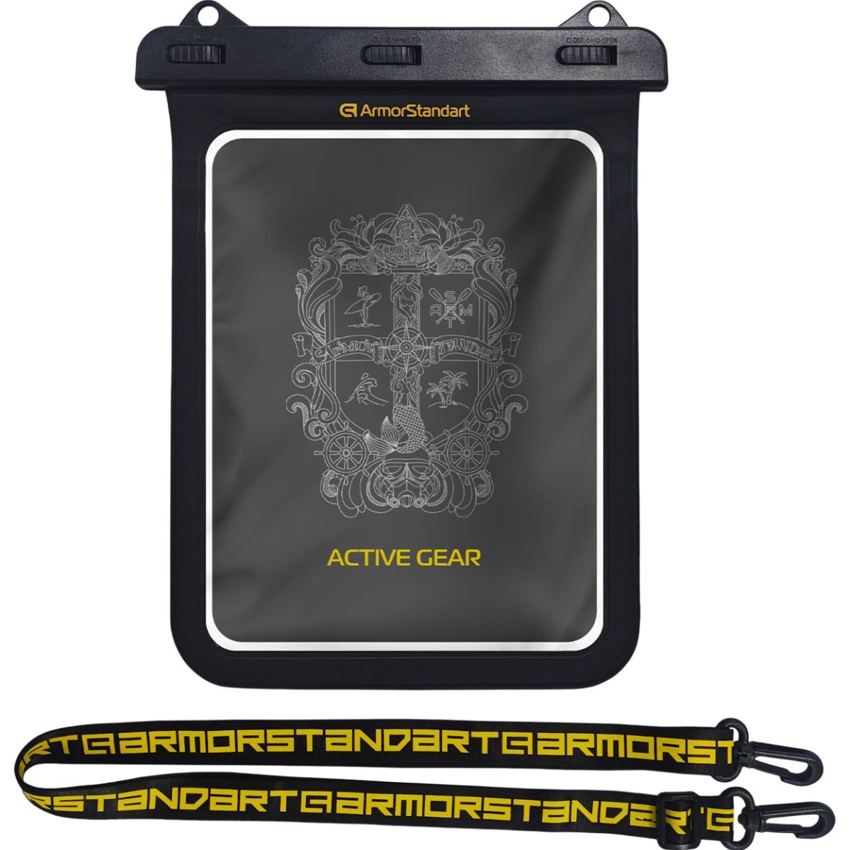 В комплект входит регулируемый ремешок для ношения на шее или плече, что делает использование планшета максимально удобным. Дополнительный фиксатор на герметичном замке обеспечивает защиту даже в самых экстремальных ситуациях — на пляже, в бассейне, во время кемпинга или дайвинга.