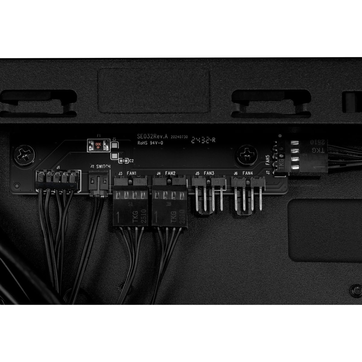 На передней панели расположены современные интерфейсы: USB Type-C (20 Гбит/с), два USB-A 3.0, аудиоразъём, а также двухсекционный контроллер PWM для вентиляции. Предусмотрена блокировка кнопок питания и перезагрузки, чтобы избежать случайных нажатий.