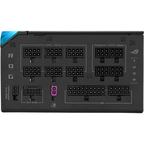 ROG Thor 1200W Platinum III имеет встроенную ARGB-подсветку Aura с поддержкой различных визуальных эффектов и возможностью синхронизации с другим Aura-совместимым оборудованием. Пользователи видеокарт ASUS и ROG с поддержкой технологии Aura Sync также смогут насладиться режимом Smart Mode – световым эффектом, изменяющим цвет в соответствии с температурой графического процессора.