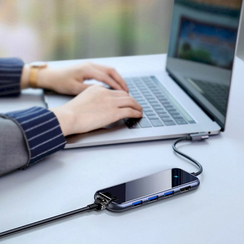 Акции и скидкиUSB-хаб Baseus Multi-functional CAHUB-DZ0G пригодится каждому пользователю портативного компьютера. В вашем ноутбуке производитель оставил только один разъем USB Type-C? Расширьте его возможности с помощью хаба Baseus Multi-functional. Подключите его к ноутбуку и добавьте ему:
