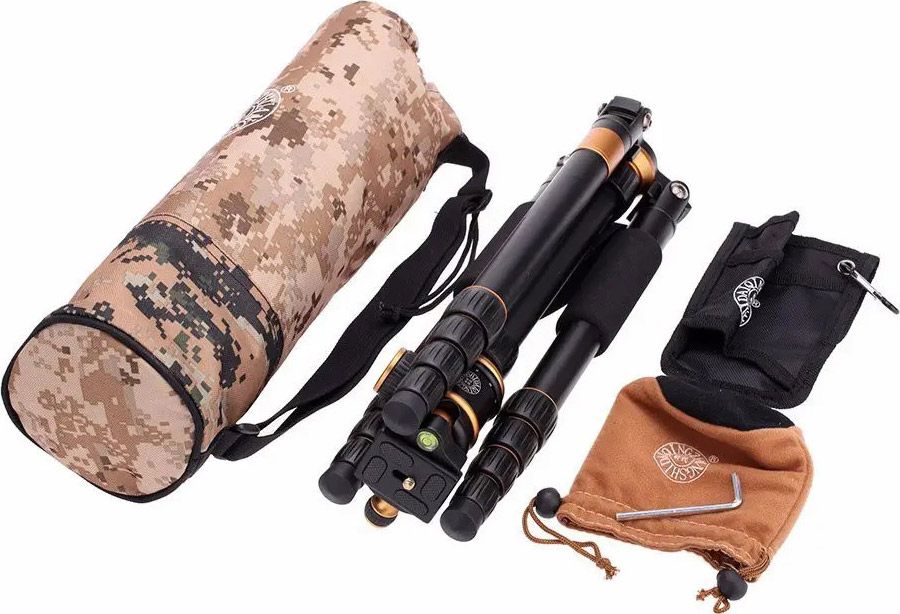 | Комплектация | Штатив • шарнирная головка с чехлом • крепление на пояс • страховочный ремешок • чехол для транспортировки |