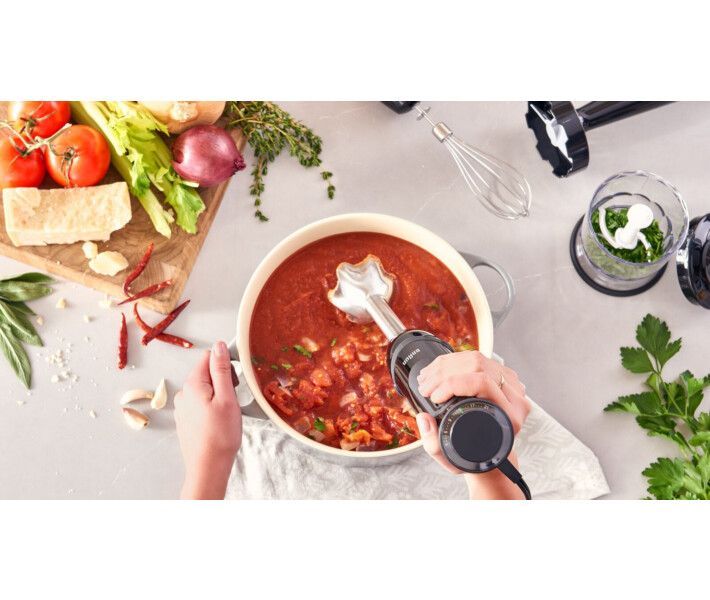 | Комплектация | Блендер, Мерный стаканчик, Емкость большого измельчителя, Насадка для пюре, Венчик для взбивания, Насадка для терки, Насадка для шинковки, Насадка для теста, Насадка измельчитель |