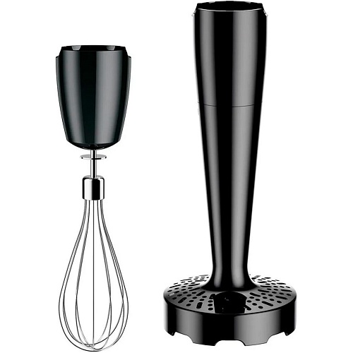 Комплектация поставки предусматривает две удобные чаши, а также набор разнообразных насадок. Качественный венчик позволит без проблем взбить кремы, соусы, муссы, яичные белки, сливки или замесить негустое тесто на блинчики и оладьи. Измельчитель объёмом 350 мл и комбайн переработают мясо в домашний фарш, порежут овощи и зелень для тепловой обработки, порубят орехи, твёрдый сыр. А мерный стакан с градуированной шкалой поможет точно следовать рецепту.