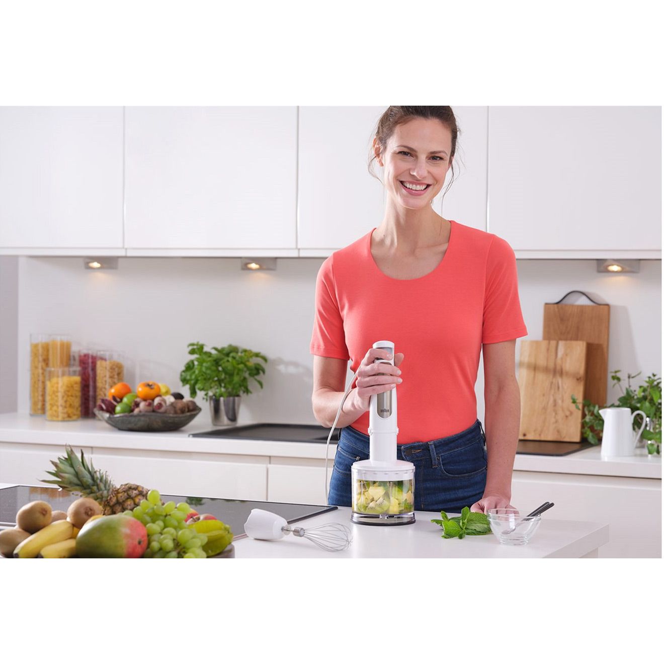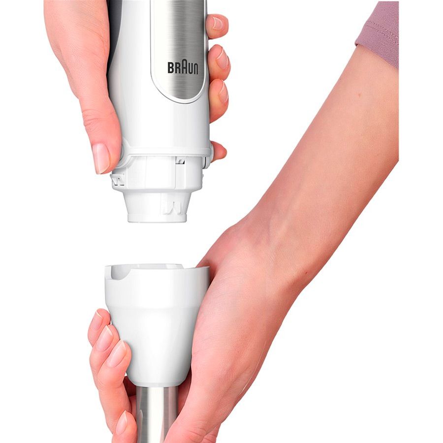 Блендер Braun MultiQuick оснащен инновационной технологией SplashControl, которая предотвращает разбрызгивание во время смешивания. Благодаря особой форме ножки блендера вы можете легко обрабатывать как твердые, так и жидкие ингредиенты, не волнуясь о чистоте кухни.