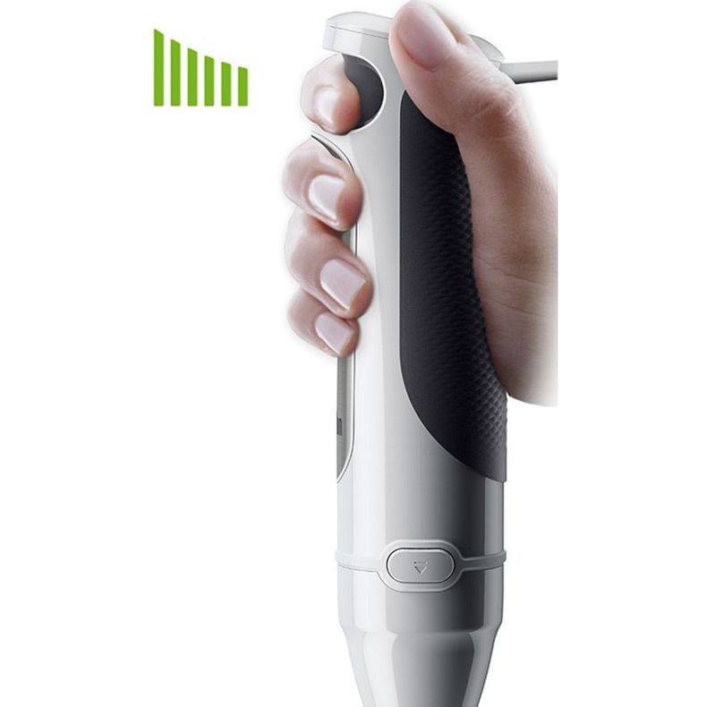 Мощность в 1000 Вт обеспечивает качественную и быструю работу погружного блендера с минимальным уровнем шума и пониженной вибрацией. А благодаря эргономичной форме его будет удобно держать в руке во время работы.