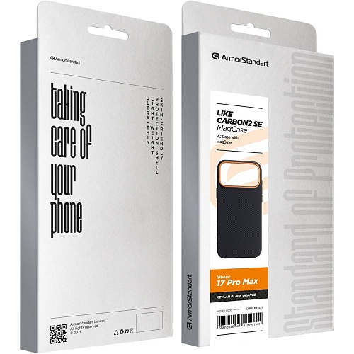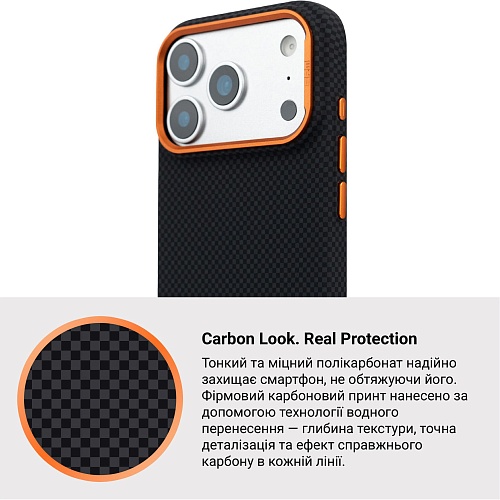 Чехол ArmorStandart LikeCarbon2 SE MagCase для Apple iPhone 17 Pro Max Kevlar Black Orange (ARM89165)