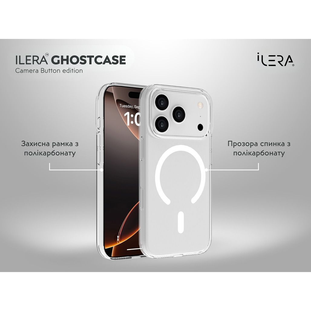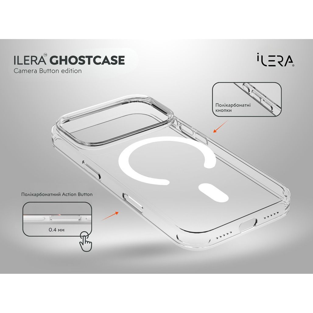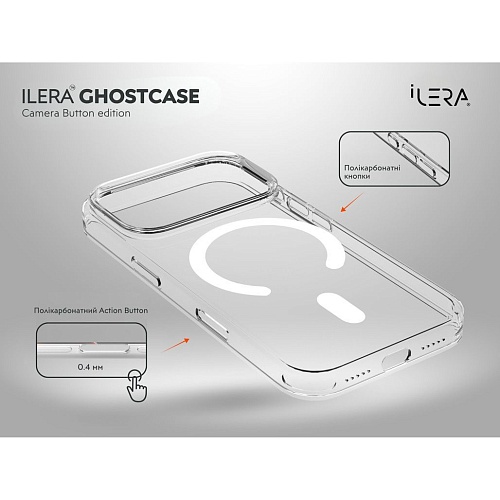 Чехол iLera GhostCase Camera Button with MagSafe для Apple iPhone 17 Pro Max Transparent (iLGCAClCaBk17PrMx)
