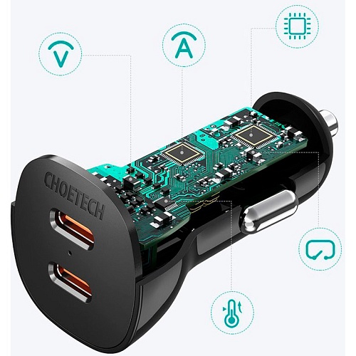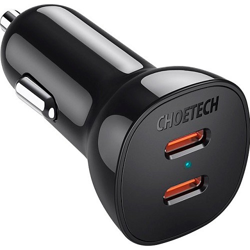Автомобильное зарядное устройство Choetech TC0008 40W 2xUSB-C PD Car Charger Black