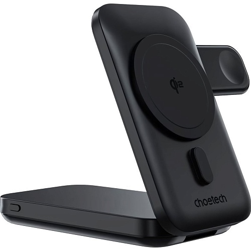 Беспроводное зарядное устройство Choetech Qi2 3in1 Magnetic Charger Holder with 10000mAh 15W Black (B750-CCBK)