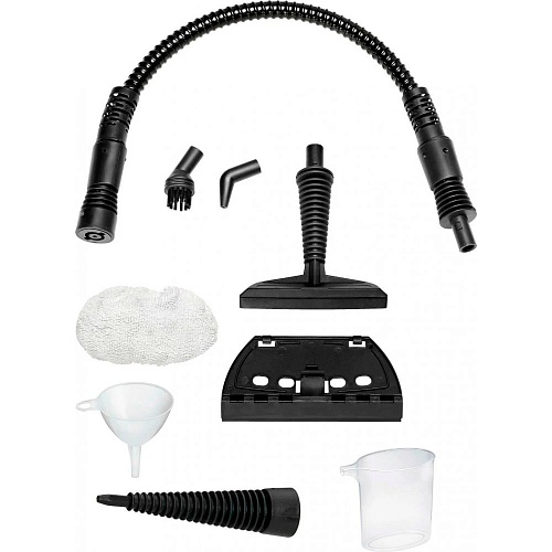 Комплектация | Пароочиститель • насадка-щетка • угловая насадка • флисовая насадка • насадка для окон • универсальная насадка • паровое сопло • шланг • мерный стакан • воронка • документация |