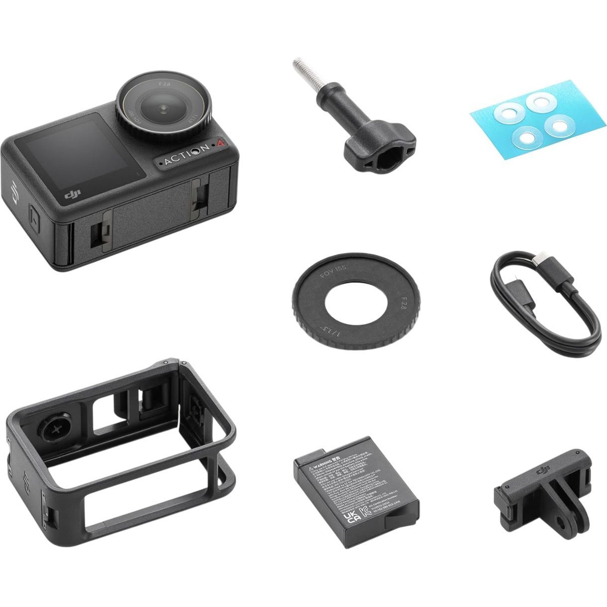 | Комплектация | Экшн-камера • стопорный винт Osmo • противоскользящие подкладки • горизонтально-вертикальная защитная рамка • бленда • аккумулятор • кабель USB-C - USB-C • быстросъемный переходный крепеж • документация |