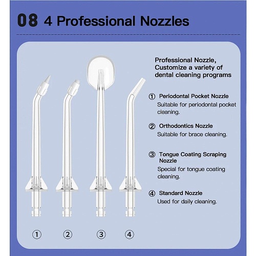 Комплектация | Ирригатор • 4 насадки • документация |