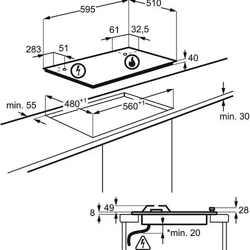 Размеры | 595 х 510 x 40 мм (варочная поверхность) • 560 х 480 мм (монтажные размеры) |