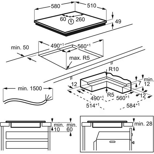 Размеры | 580 х 510 x 49 мм (варочная поверхность) • 560 х 490 мм (монтажные размеры) |