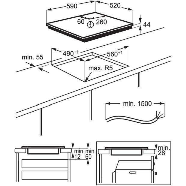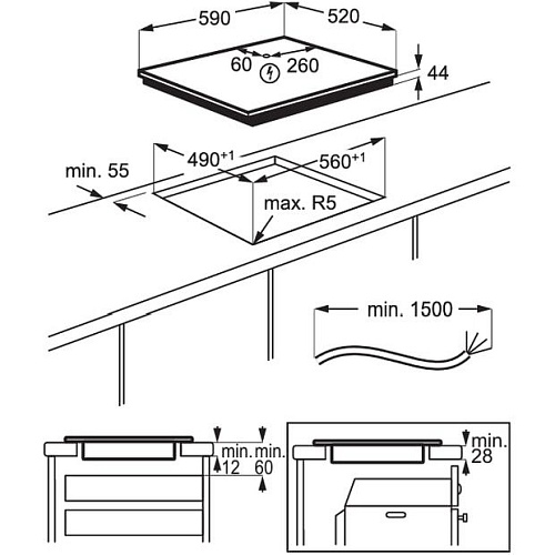 Размеры | 590 х 520 х 44 мм (варочная поверхность) • 560 х 490 мм (монтажные размеры) |