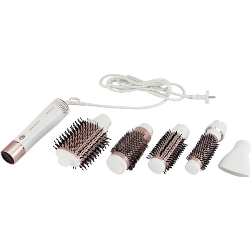 Комплектация | Фен-щетка • насадка полукруглая • круглая насадка 25 мм • круглая насадка 35 мм • круглая насадка 50 мм • концентратор для свободной сушки • документация |