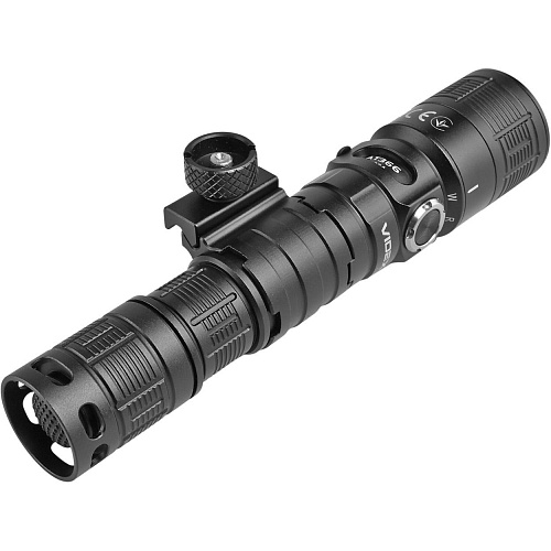 Для удобства транспортировки Videx VLF-AT366 оснащен шнуром, который позволяет комфортно носить устройство. В комплект входят клипса, запасная накладка для тактической кнопки и держатель для планки Пикатинни, что позволяет закрепить фонарь на оружии. Процесс фиксации прост: достаточно открутить зажимную гайку против часовой стрелки, разместить фонарик на рейке и затянуть ее обратно. Такая конструкция делает его универсальным инструментом для военных, охотников или туристов.