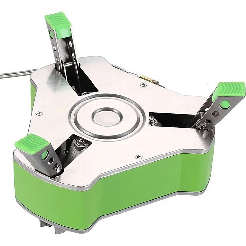 За удобство эксплуатации отвечают три складные стойки для посуды и три металлические ножки. Зубчатая кромка стоек способствует надежному удержанию котелка на поверхности без скольжения, а ребристые ножки повышают устойчивость конструкции вне зависимости от рельефа поверхности. После установки высота конструкции равна 125 миллиметрам, а диаметр — 265 миллиметрам, поэтому на горелку удобно устанавливать широкую посуду повышенного объема. В сложенном виде габариты модели составляют 210 х 95 миллиметров при весе 1,1 килограмма.