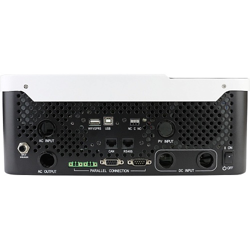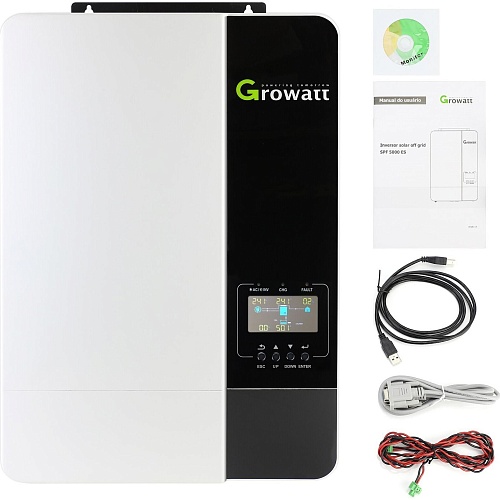 | Комплектация | Гибридный солнечный инвертор • CD-диск с ПО • кабель USB-A - USB-B • кабель RS-232 • кабель BMS • документация |