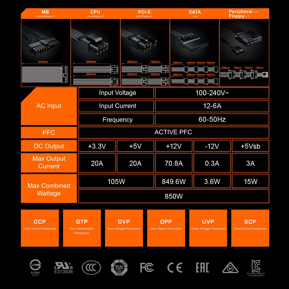 Блок питания Gigabyte P850GM 850W (GP-P850GM)