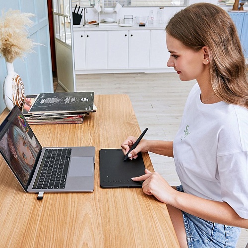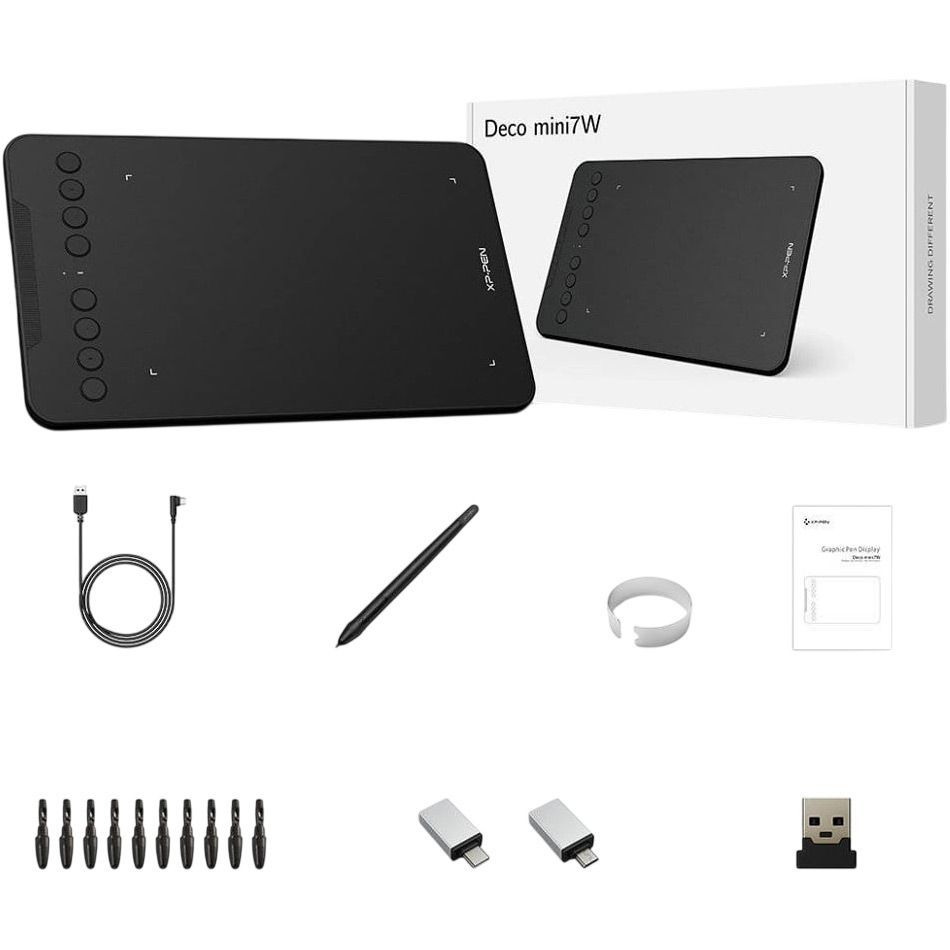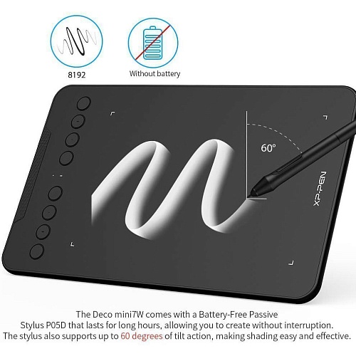 Графический планшет XP-Pen Deco Mini7W сочетает компактный формат с высокой производительностью, что делает его удобным инструментом для ежедневной творческой работы. Благодаря малому весу и мобильной конструкции его легко брать с собой, не теряя функциональности. Модель позволяет быстро фиксировать идеи, работать с эскизами и графикой в любых условиях, когда важна оперативность и доступность инструмента.