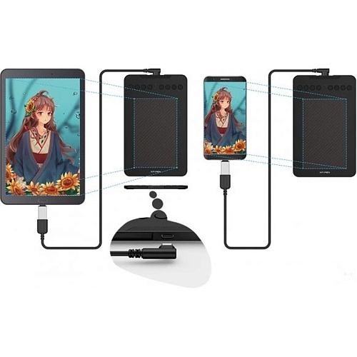 Модель поддерживает подключение через USB-C – USB-C с помощью комплектного адаптера, что обеспечивает совместимость с различными вычислительными устройствами. Такой интерфейс гарантирует стабильную передачу данных и быструю реакцию на действия пользователя. Это позволяет легко интегрировать планшет в существующую рабочую систему без сложных настроек.