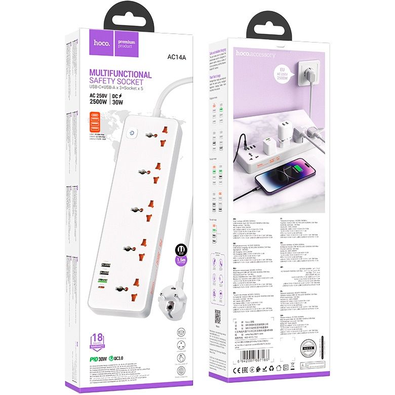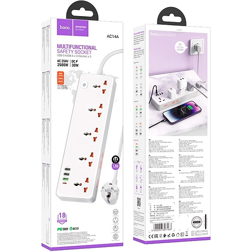 Сетевой фильтр Hoco AC14A White EU
