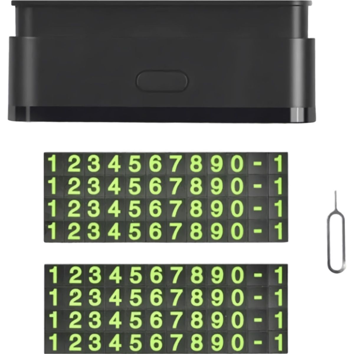 | Комплектация | Автомобильная парковочная табличка • 8 групп цифр • инструмент для извлечения • документация |