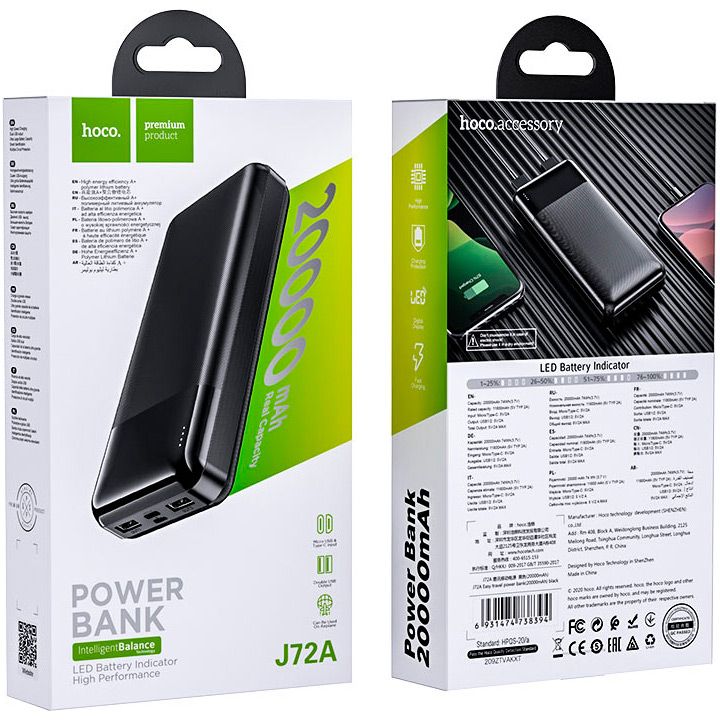 Внешний аккумулятор Hoco J72A Easy Travel 20000mAh 10W Black (738394)