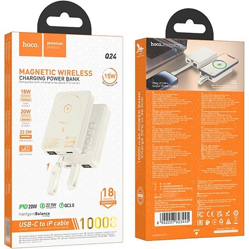 Внешний аккумулятор Hoco Q24 Elegant MagSafe 10000mAh 22.5W Milky White