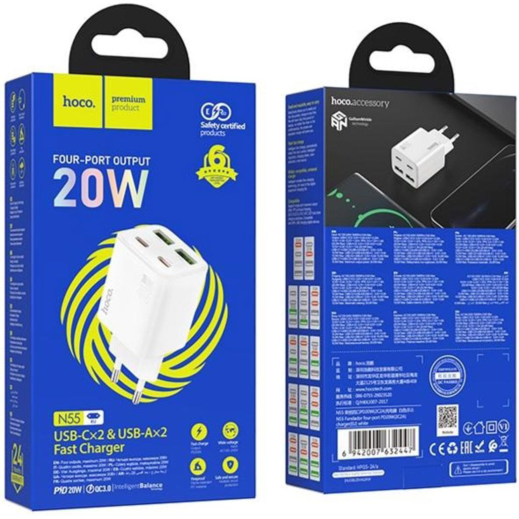 Сетевое зарядное устройство Hoco N55 Fundador 20W White