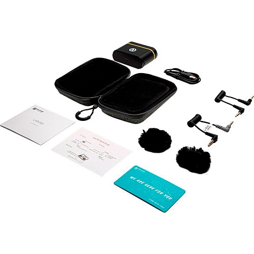 Комплектация | Зарядный кейс • передатчик 2 шт • приемник • ветрозащита 2 шт • кабель 3.5 мм TRS • кабель с 3.5 мм TRS на 3.5 мм TRRS • кабель USB-С - USB-А • сумка для хранения • документация |