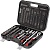 Инструменты упакованы в надежный и ударопрочный пластиковый кейс. Для сохранности и максимального срока службы инструмента, в чемодане предусмотрены специальные отсеки с фиксатором для хранения каждой детали в отдельности. Металлические замки уберегут кейс от случайного открытия. Ящик легко переносить и хранить, он компактный и не занимает много места (375*295*85 мм). Современный яркий дизайн кейса точно не оставит никого равнодушным!