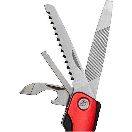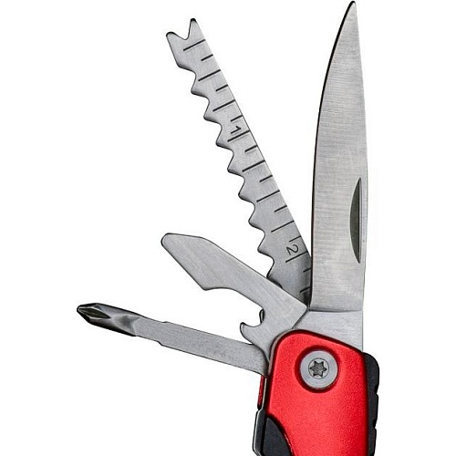 Инструменты в комплекте | Кусачки для проводов, Линейка, Напильник двухсторонний, Нож для чистки рыбы, Нож прямой, Отвертка крестовая, Отвертка плоская маленькая, Открывалка для бутылок, Пилка по дереву, Плоскогубцы, Экстрактор |
