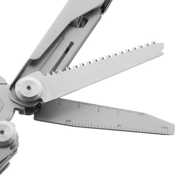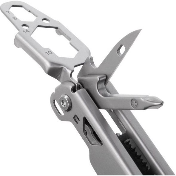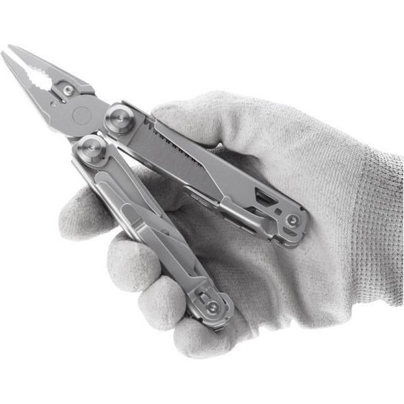 Мультиинструмент обладает 12 различными инструментами, которые размещаются в легком и компактом корпусе. Все комплектующие изготовлены из стали 440А, устойчивой к появлению коррозии и обладают отличными износоустойчивыми качествами. Нож мультитула имеет заводскую профессиональную заточку. Кусачки инструмента оснащены сменными губками, которые при необходимости можно заменить.