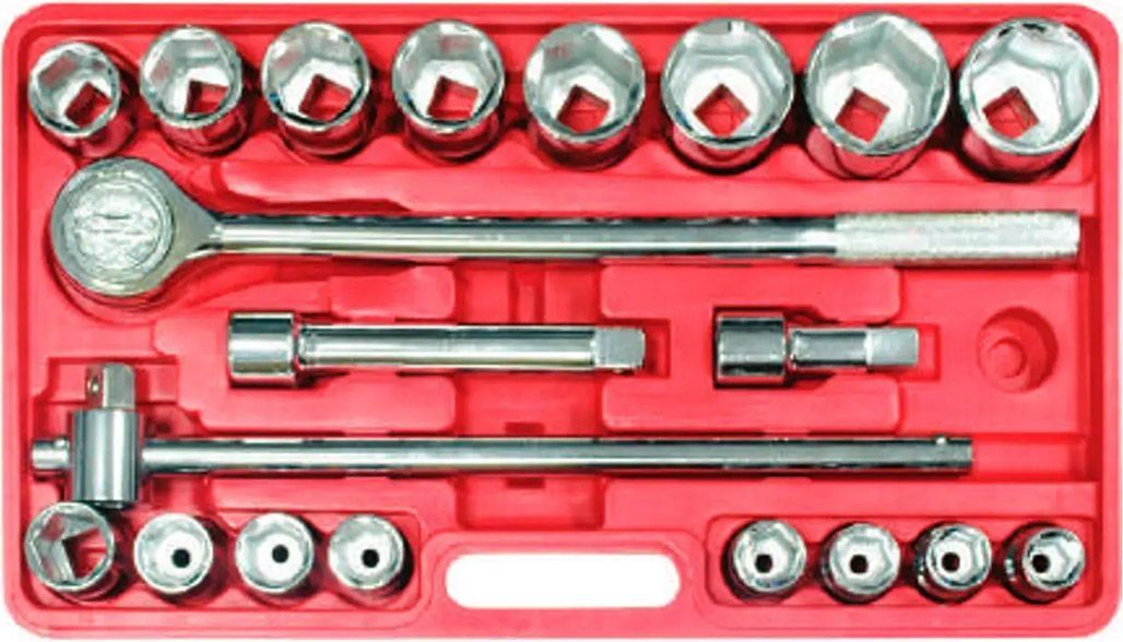 Intertool НT-2221 включает в себя широкий выбор торцевых головок, в том числе размеры от 19 мм до 50 мм. Комплект также включает в себя удлинители и специальные ключи, чтобы удовлетворить разнообразные потребности при работе с крупными и сложными соединениями. Этот набор - незаменимый инструмент для профессионалов, которые ценят надежность и эффективность в своей работе.