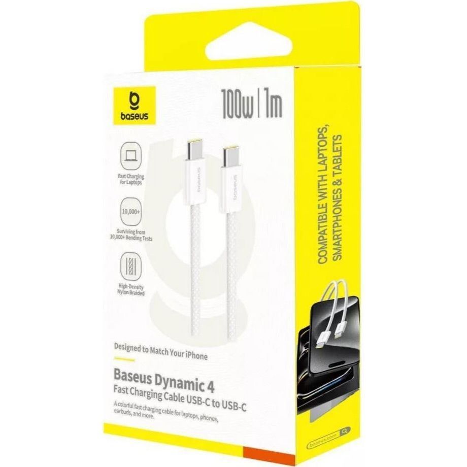 Кабель Baseus Dynamic 4 Fast Charging USB-C to USB-C 1m White (P10381400211-00)