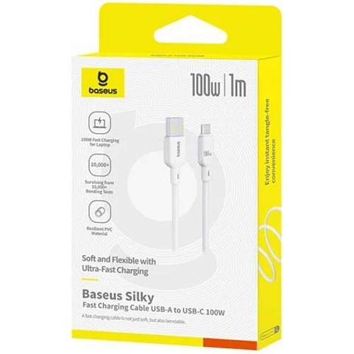 Кабель Baseus Silky Series USB-A to USB-C 100W 1m White (P10377703213-00)