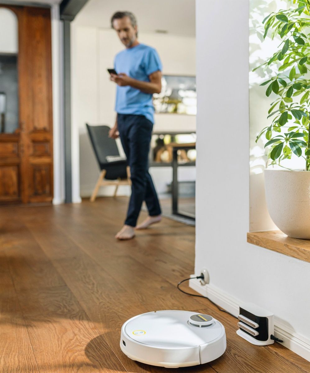 Умный робот-пылесос RCV 3 - ваш верный помощник в уборке. Этот инновационный устройство систематически и самостоятельно очищает ваши твердые полы и ковры с низким ворсом. Благодаря вращающейся щетке, боковой щетке для краев и вентилятору, сухая грязь надежно транспортируется во встроенный контейнер для отходов. И при необходимости, RCV 3 может выполнять влажную уборку с помощью влажной швабры.