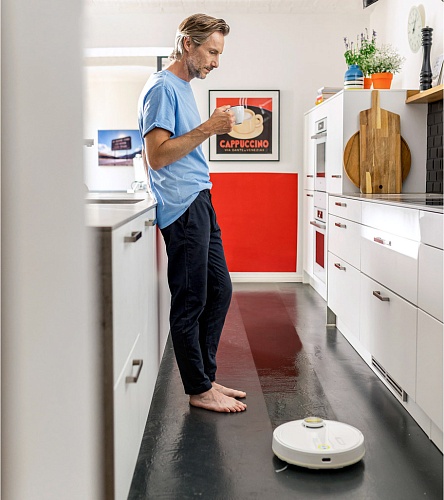 Используйте влажную швабру для еще лучших результатов уборки. Резервуар для чистой воды и протирочный блок с микрофиброй делают RCV 3 многофункциональным устройством. Его точная навигация, датчики падения и голосовой вывод делают уборку легкой и эффективной.