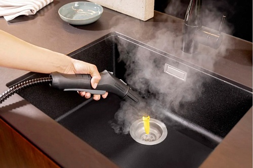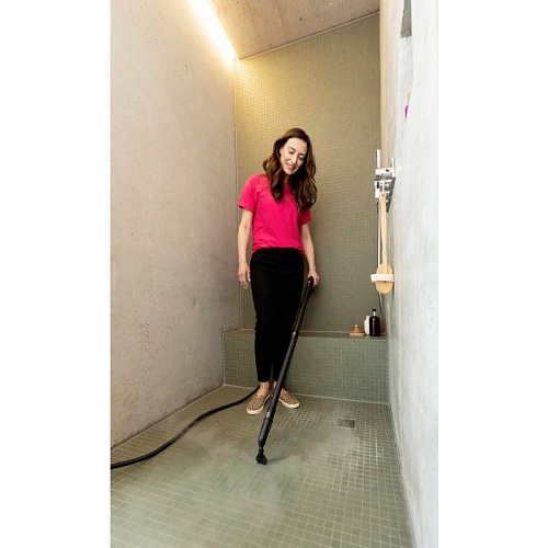Комплектация | Пароочиститель • комплект для уборки пола: EasyFix + удлинительная трубка (2 × 0.5 м) • ручная насадка • точечное сопло • мощное сопло • круглая щетка (малая) • круглая щетка (большая) • салфетка для пола из микроволокна с застежкой-липучкой, 2 шт • обтяжка из микроволокна для ручной насадки, 1 шт • щетка для очистки швов • насадка для очистки ковров |