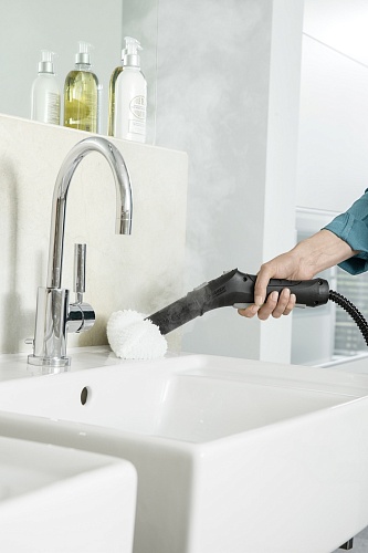 Комплектация | Пароочиститель • паровой утюг • паровой шланг с пистолетом 2.3м • точечное сопло 2шт • ручная насадка • круглая щетка 2шт • насадка для пола • удлинительные трубки (2х0.5м) • насадка для очистки ковров • салфетка для пола 2шт |