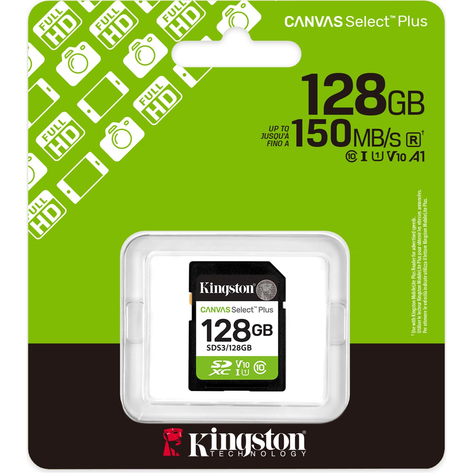 Карта памяти Kingston SDXC Canvas Select Plus 128GB Class 10 UHS-I V10 A1 (SDS3/128GB)