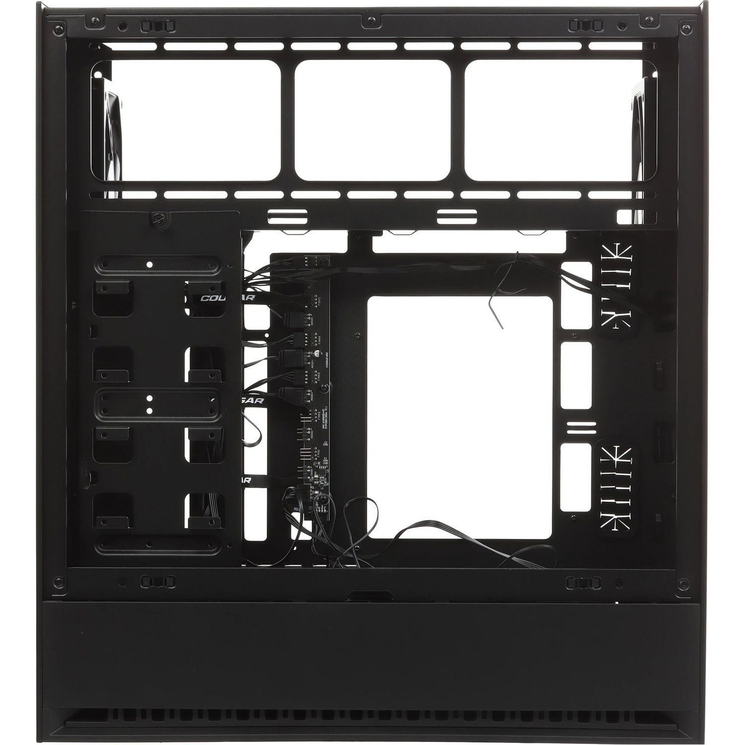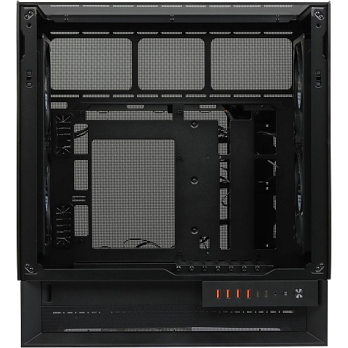 OMNY X RGB предлагает продуманную систему для аккуратного размещения кабелей. Все провода проходят через нижний скрытый отсек, что исключает визуальный беспорядок внутри корпуса. Такое решение упрощает сборку, сохраняет аккуратный вид и обеспечивает оптимальную циркуляцию воздуха без препятствий.