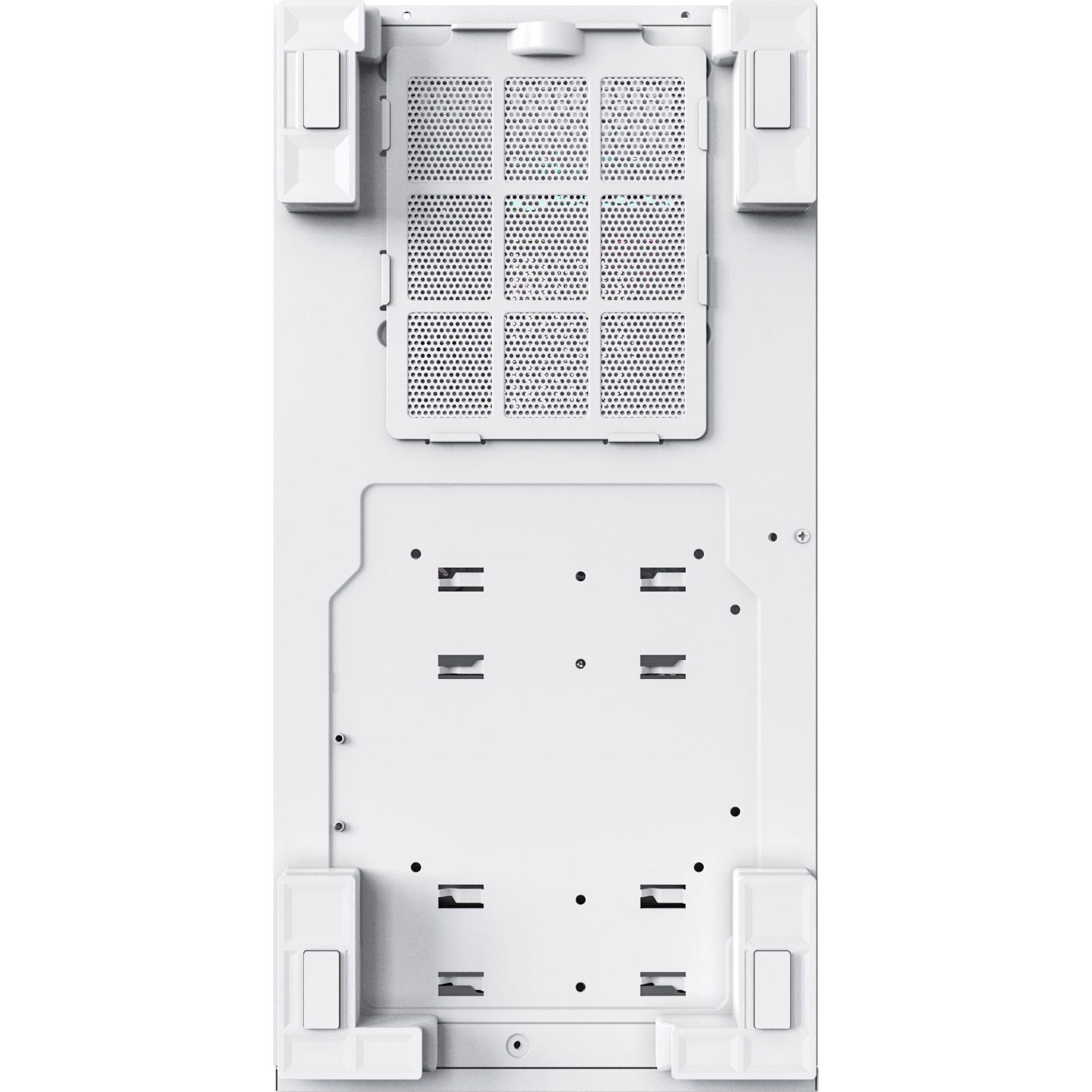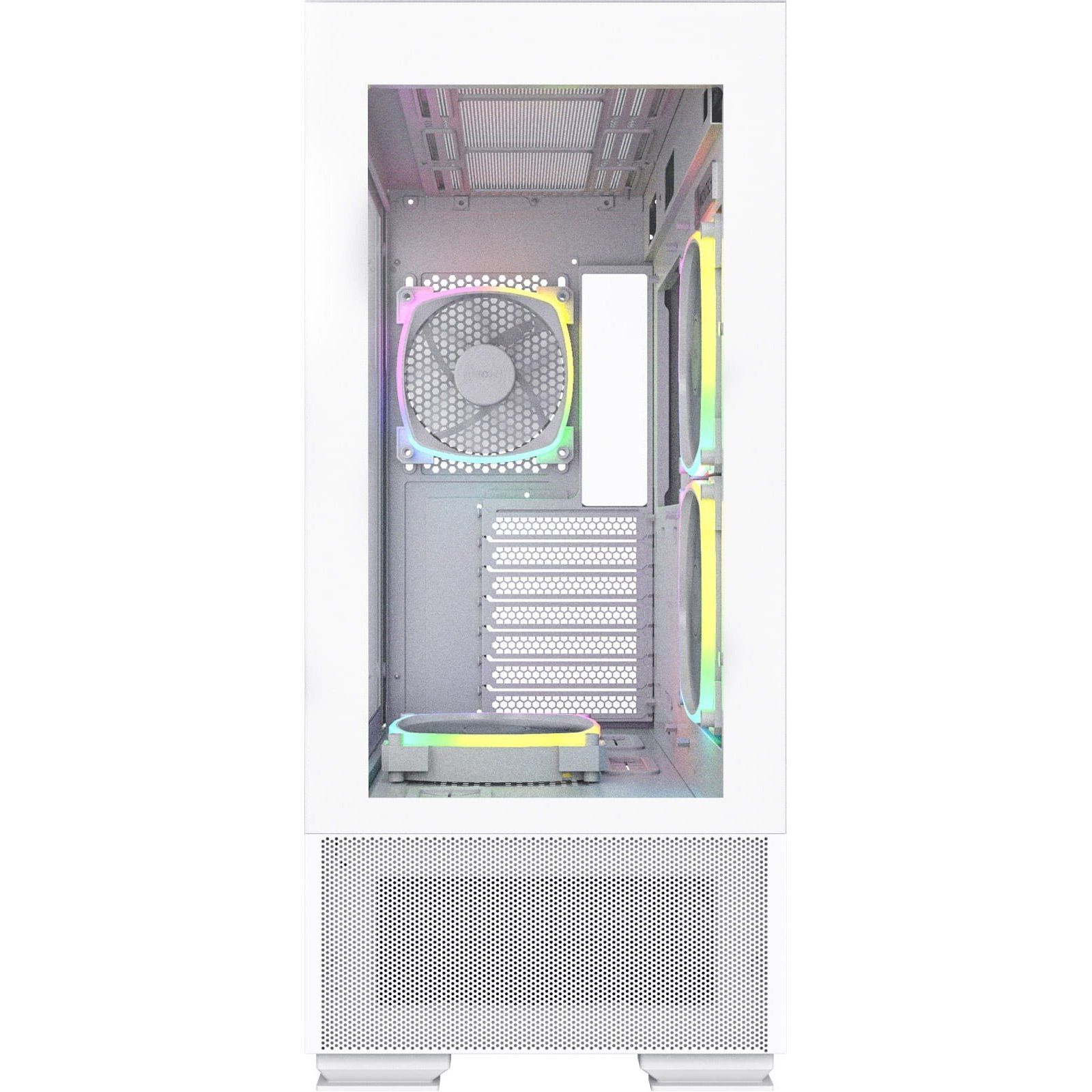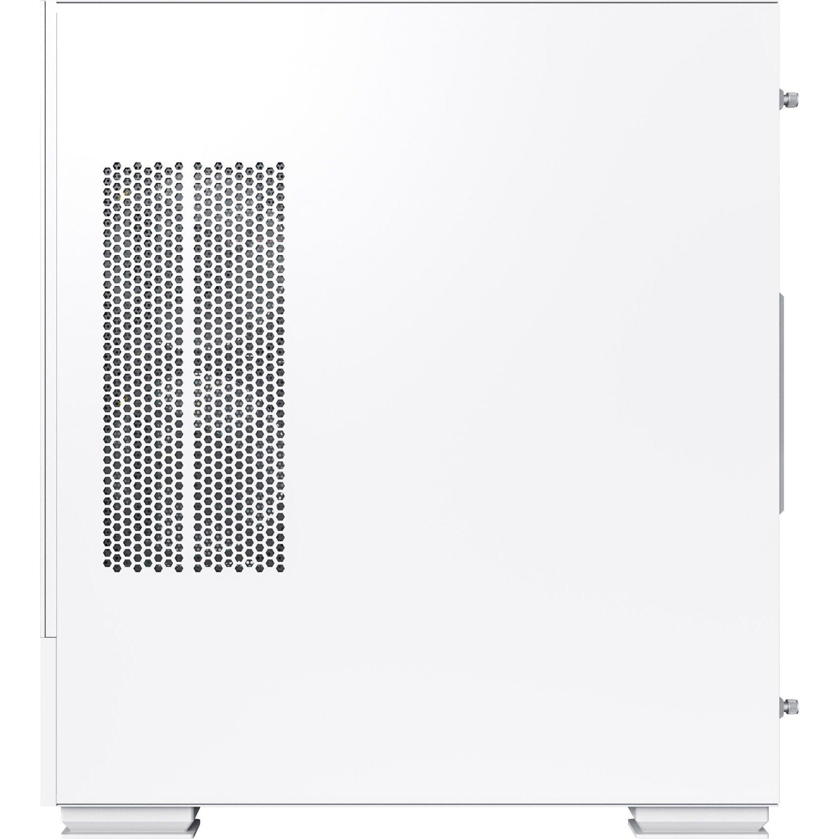 Корпус получил уникальную схему вентиляции, которая отличает его от классических моделей. Боковые вентиляторы с перевернутыми лопастями эффективно втягивают воздух, в то время как задний вентилятор удаляет нагретый. Дополнительный вентилятор в кожухе блока питания непосредственно охлаждает графический процессор, повышая стабильность системы. Такая концепция создает равномерный и мощный воздушный поток, что гарантирует комфортный температурный режим даже для самых требовательных комплектующих.