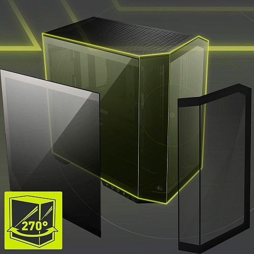 Передняя и боковые панели корпуса выполнены съемными, что значительно упрощает установку боковых вентиляторов и радиаторов без каких-либо препятствий. Такая конструкция обеспечивает полный доступ к зоне монтажа, сокращает время сборки и делает процесс апгрейда более удобным и аккуратным.