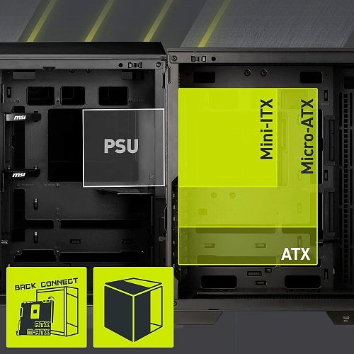Корпус поддерживает материнские платы формата ATX и Micro-ATX с обратным расположением разъемов типа PROJECT ZERO. Такое решение упрощает процесс сборки, помогает скрыть кабели и уменьшает риск пропустить подключение, обеспечивая аккуратный вид и удобство монтажа.