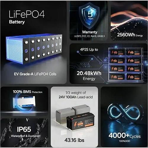 Аккумулятор Li Time LiFePO4 24V BT (25.6V/100Ah/2560Wh)