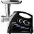 | Комплектация | Мясорубка • 3 диска для помола (3 мм, 5 мм и 7 мм) • насадка для колбас • насадка для кеббе • соковыжималка для томатов • толкатель • лоток • документация |